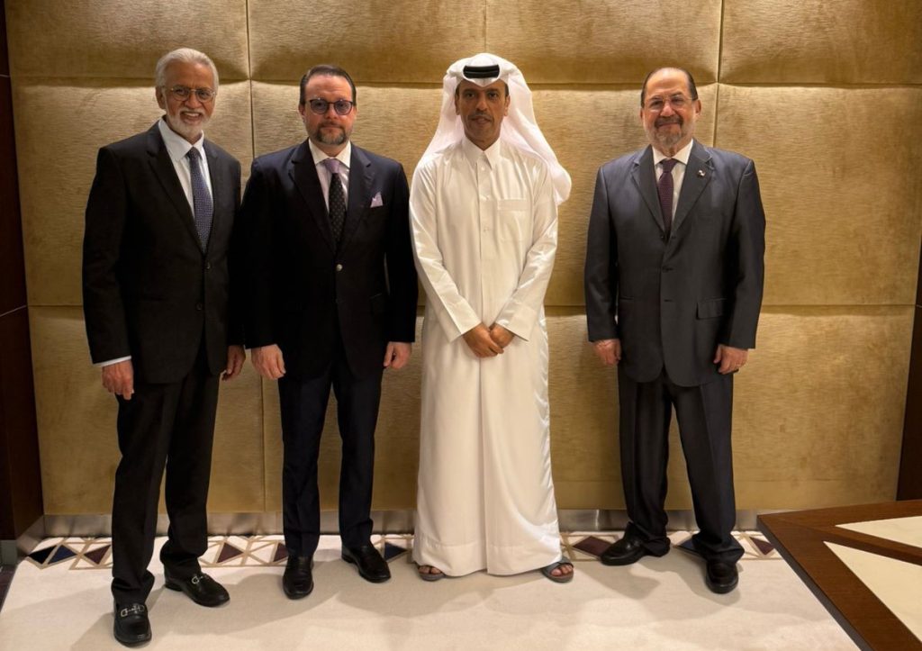 En reunión con el jeque Khalifa bin Jassim Al Thani, presidente de la Cámara de Comercio de Qatar, se conversó sobre avanzar hacia la firma de un acuerdo de cooperación institucional, así como la conformación de delegaciones empresariales en ambas direcciones, con el objetivo de promover el intercambio comercial, fomentar inversiones y desarrollar proyectos conjuntos. Durante el encuentro se destacó el interés de trabajar estrechamente con el sector privado como motor del desarrollo económico y la generación de empleo.